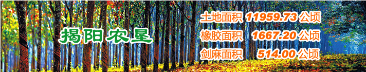 廣東省揭陽(yáng)農(nóng)墾集團(tuán)有限公司(農(nóng)墾局)下轄6個(gè)農(nóng)場(chǎng)有限公司。墾區(qū)管轄26個(gè)代管村,現(xiàn)有總?cè)丝?.11萬(wàn)人,墾區(qū)土地面積17.77萬(wàn)畝,目前種植天然橡膠3.13萬(wàn)畝,水果 2.57萬(wàn)畝,光伏農(nóng)業(yè)0.8萬(wàn)畝,并探索發(fā)展一批特色產(chǎn)業(yè)等。